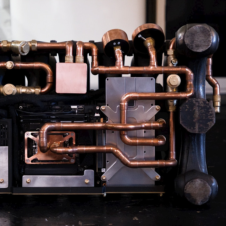 据该团队发布的内容表露,这台游戏PC的中枢建设包括Ryzen 7 9800X3D处理器、GeForce RTX 5080显卡以及32GB内存。中枢亮点在于其散热系统,一幅铸铁散热器被用作全套水冷系统的主要热交换器,大幅普及散热效劳。