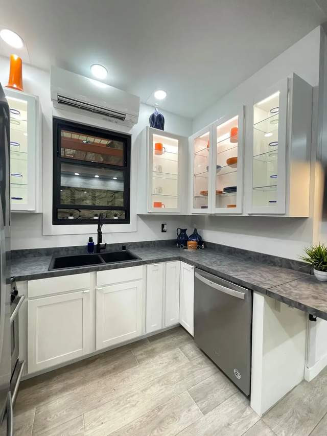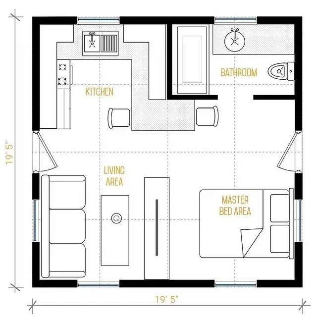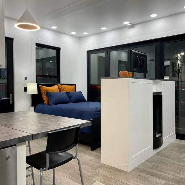 室内墙面采用防火防潮的氧化镁板,屋顶覆盖节能的TPO材料,配备齐全的厨房电器、隐藏式家具、干湿分离的卫生间,甚至预留了洗衣设备和充足插座。尽管空间紧凑,却毫无局促感,反而通过大玻璃窗与开放格局,营造出通透舒适的体验。