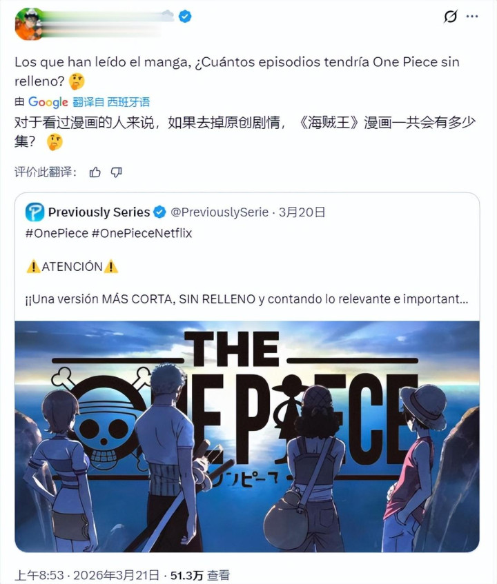 虽然我以为要是按肤浅改编密度(2-3话漫画=1集动画),海贼王大略在500集傍边不错讲完现存实质。