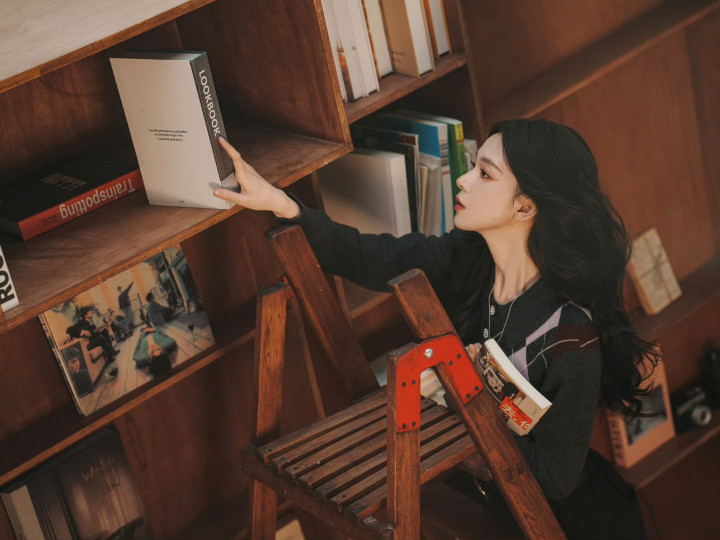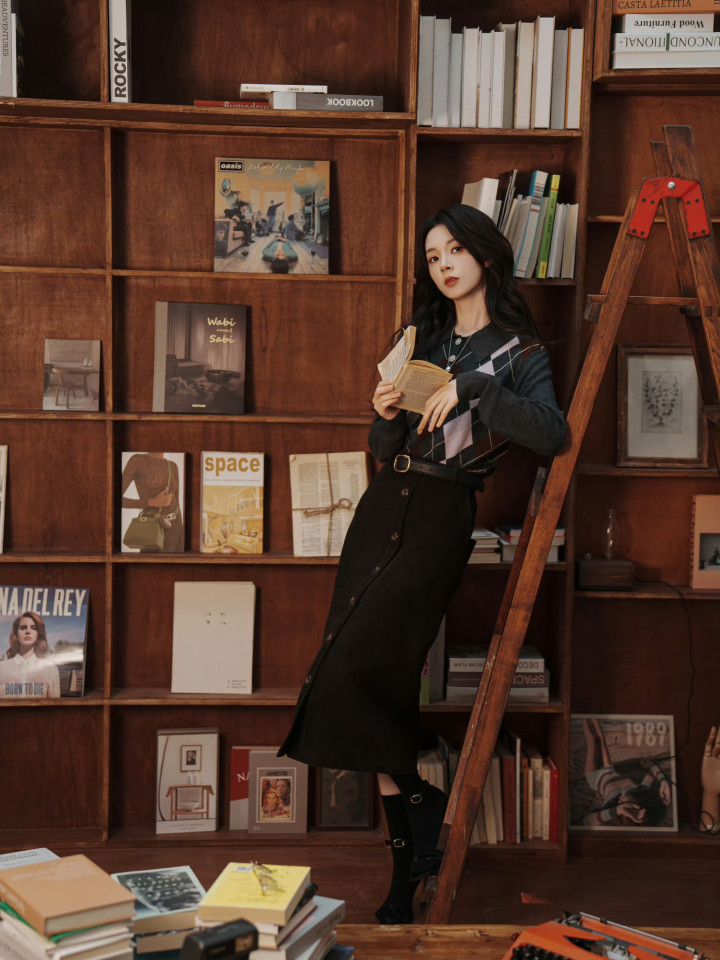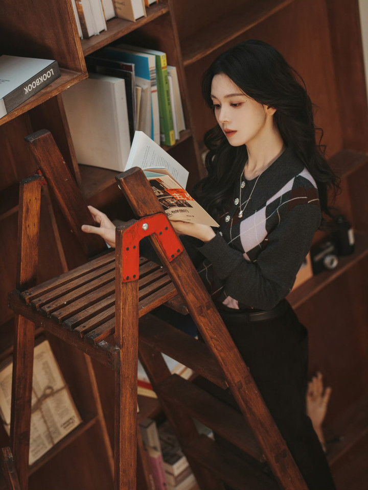 黑长鬈发当然洒落,银质长链项链点缀颈间,慵懒又知性。指尖轻翻书页的形势,自带高智感学霸气场,是藏书楼里让东谈主一眼心动的阴寒师姐,逍遥、独处又带着疏离感。