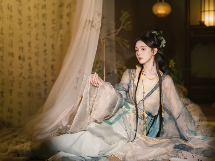 抬眼望来的俄顷,书卷气与阴寒感交汇,轻而易举间齐是登科漂后,好似是从古籍中走出的仕女,每一处穿搭细节都透着古典韵味。