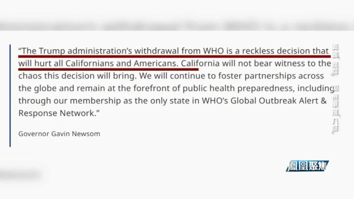 2026年1月22日,好意思国联邦政府厚爱秘书退出世界卫生组织,就在好意思国厚爱退出世卫组织奏效的24小时内,加州州长纽森秘书加州将以独处身份,加入世卫组织全球疫情警报和响应收集,成为好意思国历史上第一个绕开联邦政府、径直对接海外防疫机制的州,径直叫板联邦政府的退群决定。