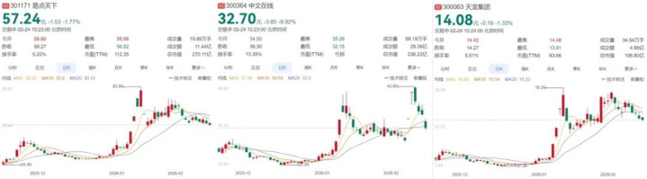 易点六合、汉文在线、天龙集团近期股价