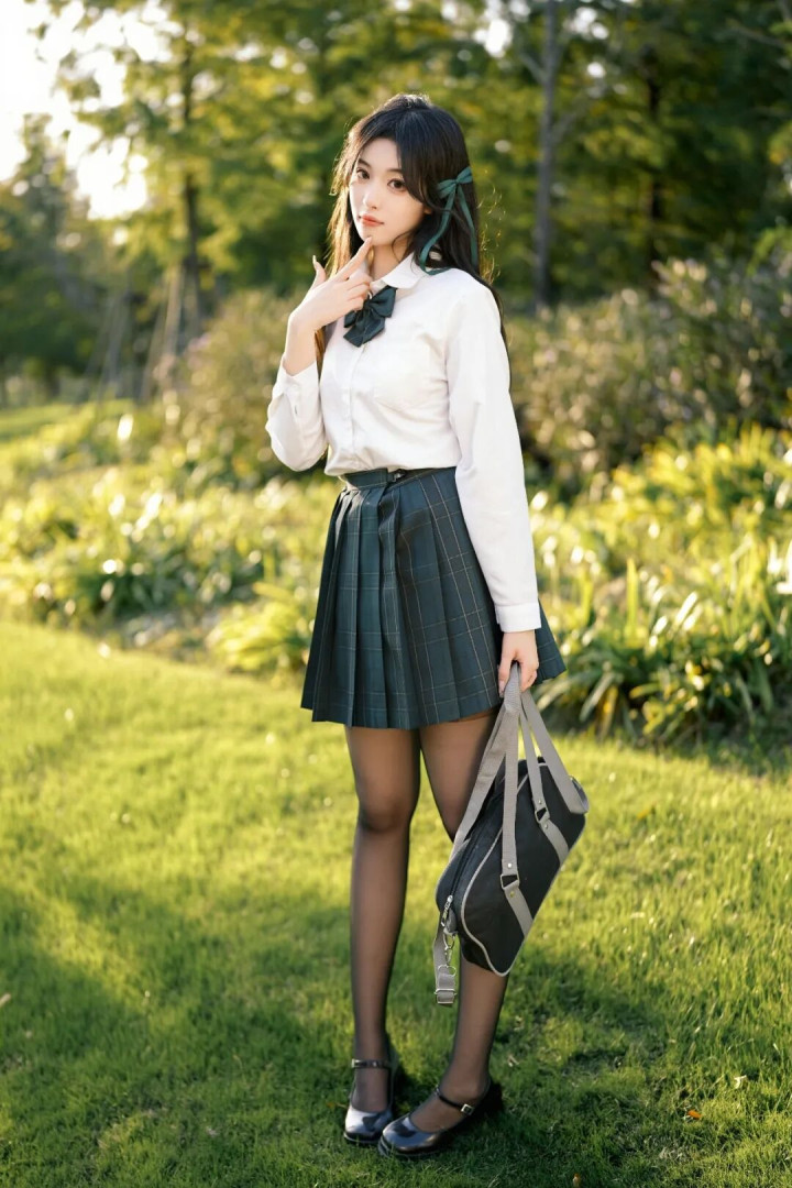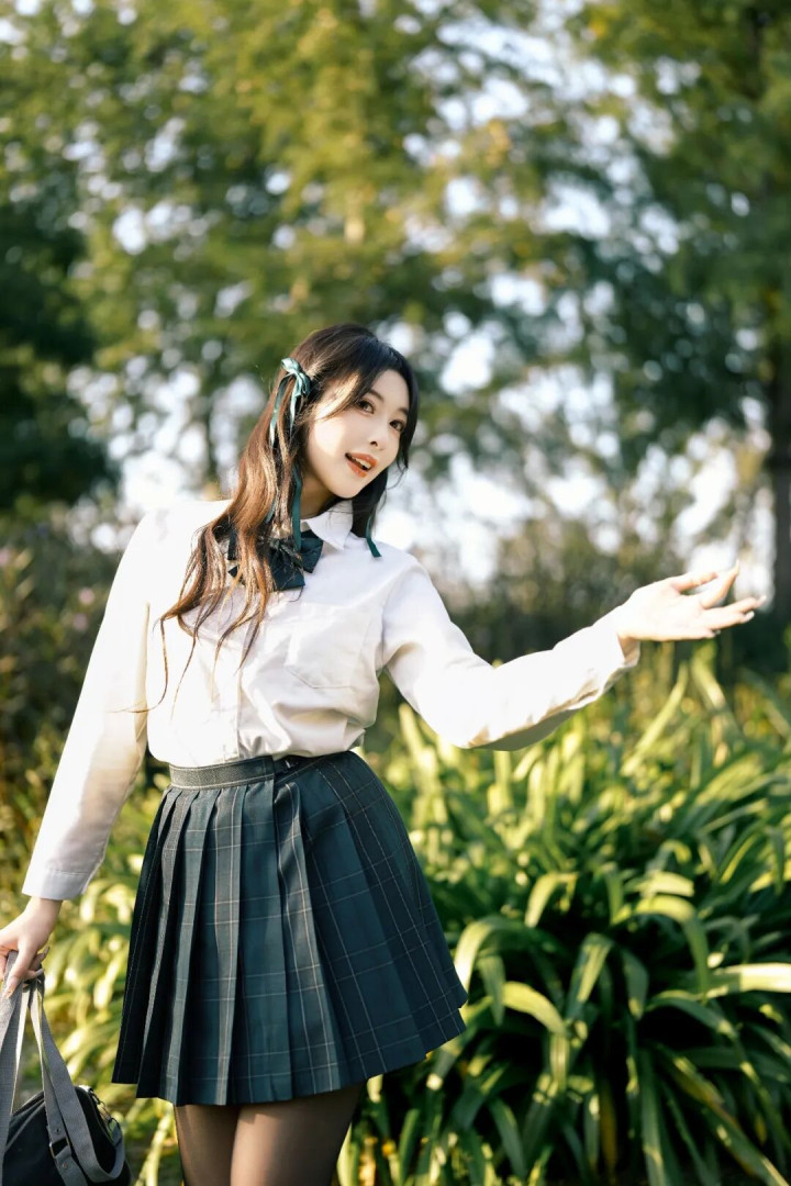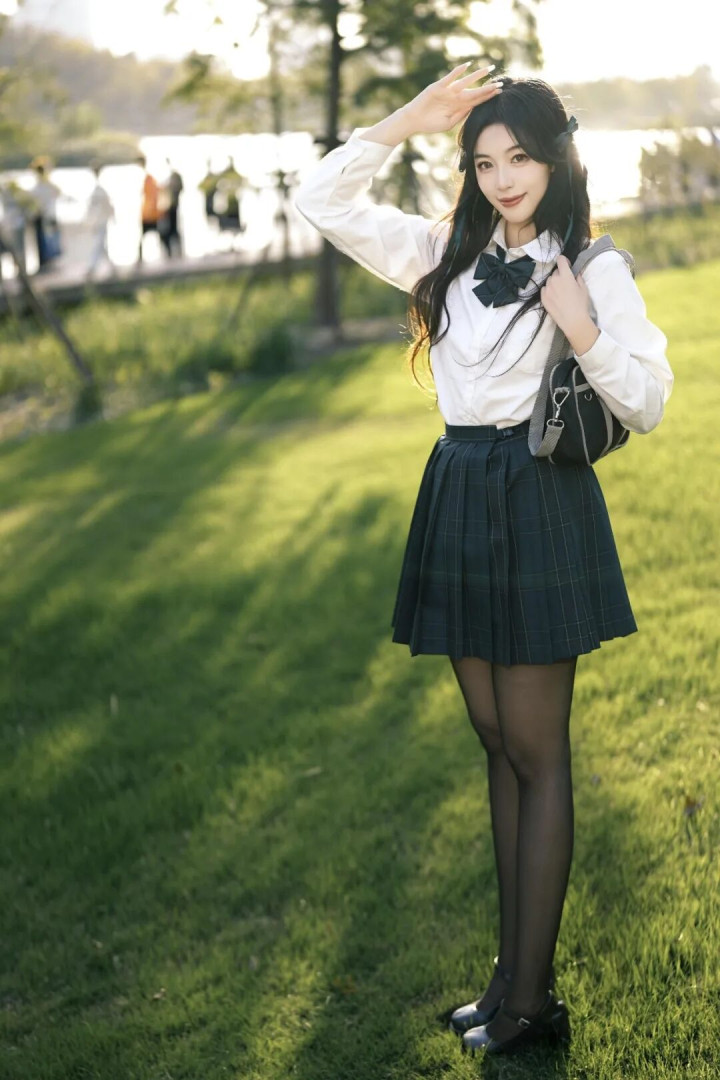 UEDBETapp下载 颜值穿搭: 白衬衫+蝴蝶领结+格纹百褶裙+玛丽珍鞋