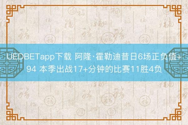 UEDBETapp下载 阿隆·霍勒迪昔日6场正负值+94 本季出战17+分钟的比赛11胜4负