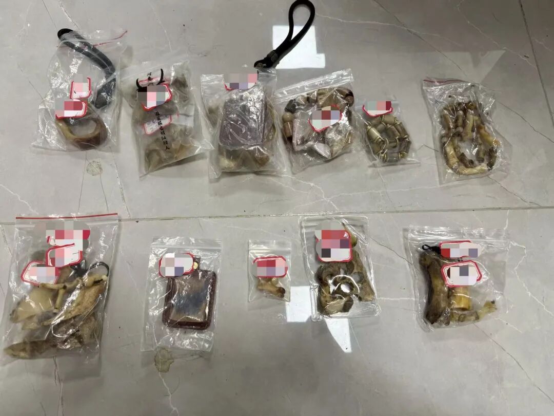 亚洲象、猫科虎、猫科豹、黑熊、猫科云豹、马来熊被列入《濒危野生动植物种国际贸易公约》(CITES)附录,其中,亚洲象、猫科虎、猫科豹、猫科云豹、马来熊为国家一级保护动物,黑熊为国家二级保护动物。目前,上述案件已移交缉私部门进一步处置。