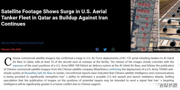 其次是中国营业遥感平台在2月初拍摄发布的位于卡塔尔的乌代德空军基地。这个基地部署有大王人的好意思军战机,同期亦然好意思军在中东的军事开荒核心,策略地位相配要紧,前不久也曾遭到伊朗的导弹要紧。